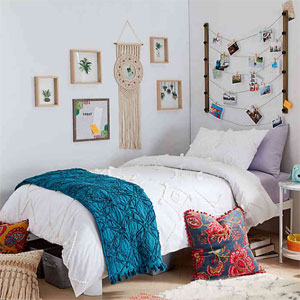 Start with the centerpiece of your dorm—your bed! Snag this comforter from Bed Bath & Beyond to make your chic textured dreams come true.