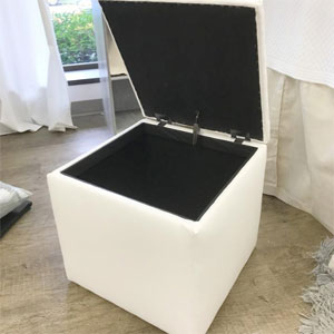 Look for multi-functional or hidden storage pieces like this ottoman from Dorm Decor. Extra seating space AND extra storage—win-win!