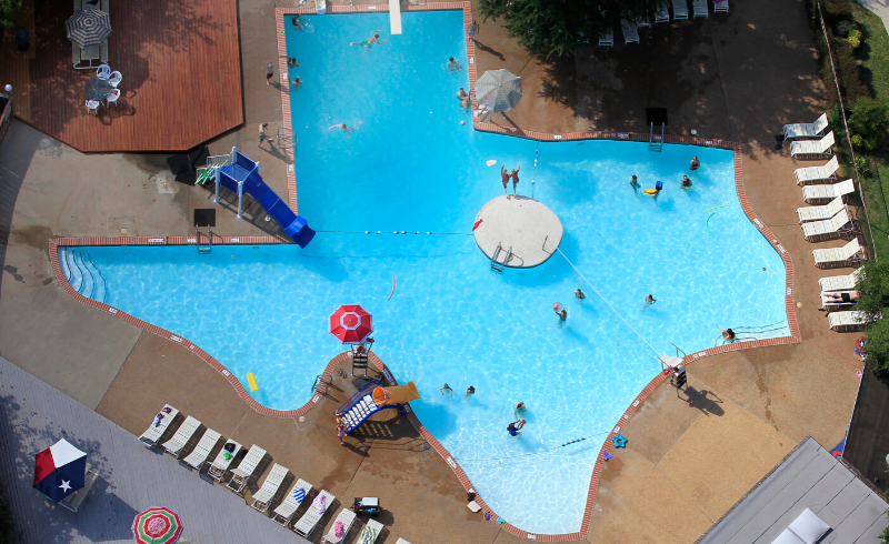 The Texas Pool is 168,000 gallons of saltwater shaped like the great State of Texas. The pool features a diving board, two water slides, and an island with a shallow “South Texas” wading area for small children and parents. Cook out on their BBQ grills or enjoy the snack bar. There are also picnic tables and a beach volleyball court. Tourist passes are available!