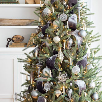 A chic silver and grey color palette for your tree will provide the perfect amount of glitz while utilizing neutral colors. We’re loving Lily Pad Cottage’s take on this look!